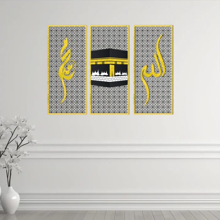 Elevate the spiritual ambiance of your home with this elegant Set of 3 Islamic Wall Frames featuring Allah, Al-Rehman, and Al-Raheem. Designed with a modern touch, these frames bring serenity and style to any space.
