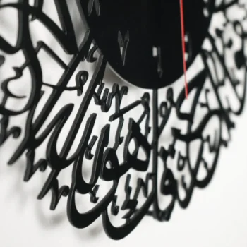 - Design: Features Surah Al-Ikhlas in beautifully detailed Arabic calligraphy, paired with a functional wall clock