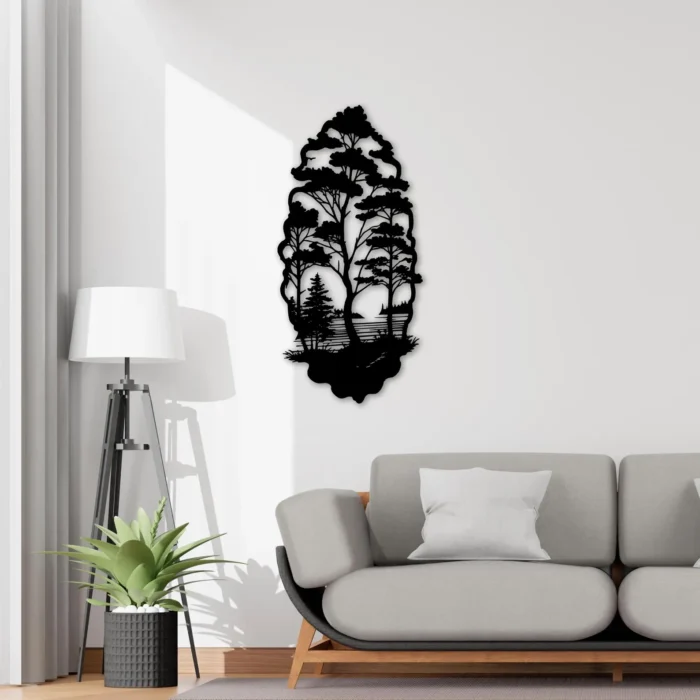 Forest & Lake MDF Wall Art – Botanical Garden Nature Silhouette Décor