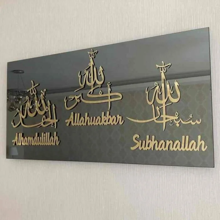 Add deep spiritual meaning and elegance to your space with this Handmade Subhanallah, Alhamdulillah, Allahuakbar Islamic Wall Art. Crafted from premium acrylic, it beautifully displays these sacred words, bringing faith and sophistication to your home.