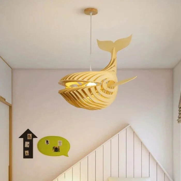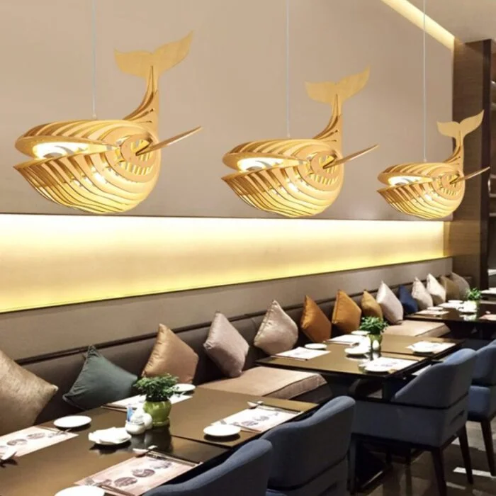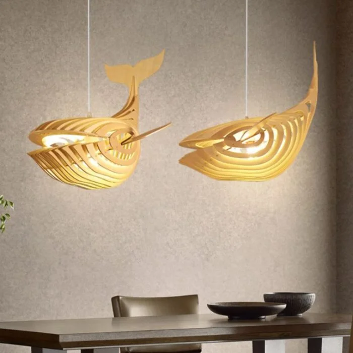 Whales Light Fixture, HQ Wooden Pendant Lights, Living Dining Room Restaurant Lamp Shade